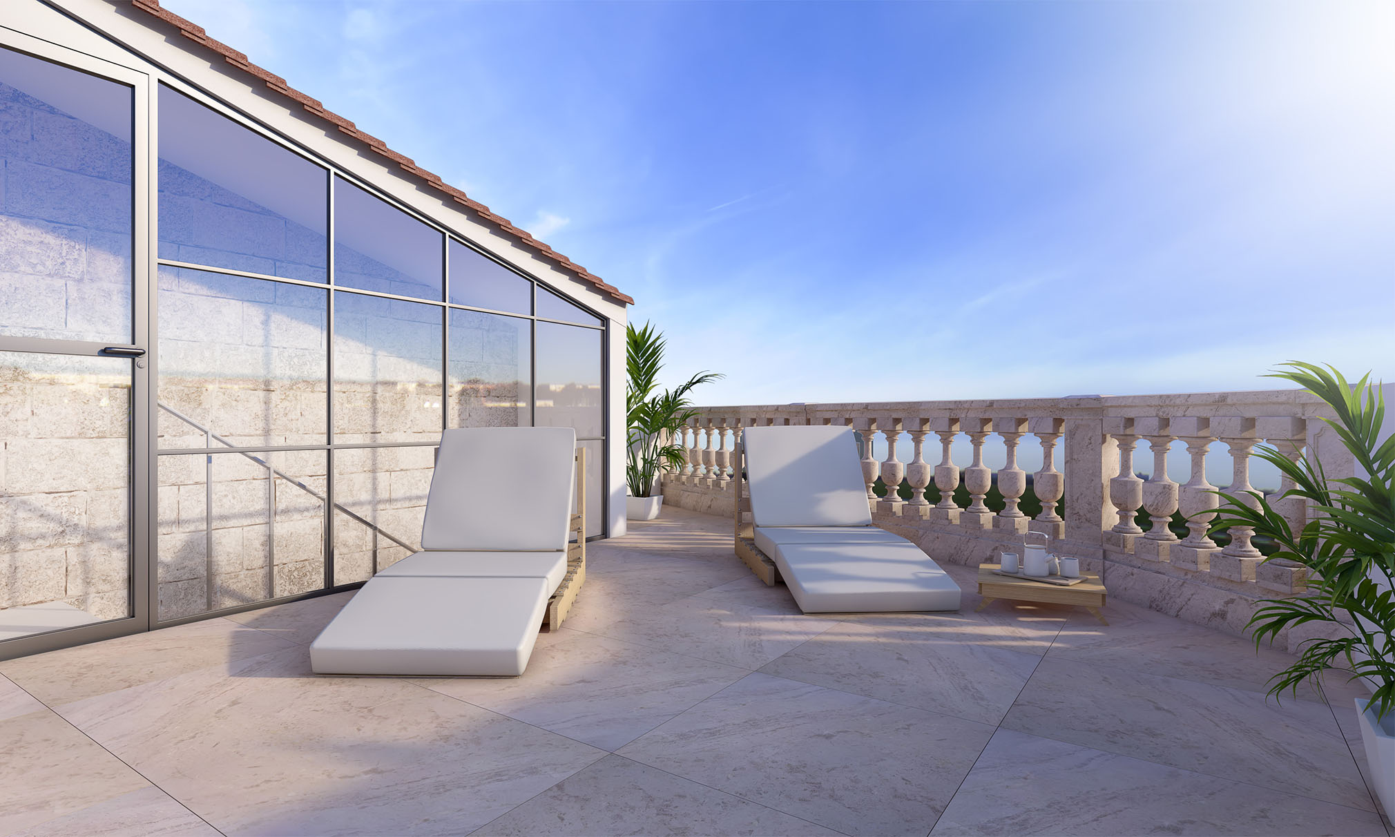 Zweifellos ist die einzigartige Attraktion dieses Stadthauses der vordere Balkon und die private Dachterrasse. Hier können Sie einen atemberaubenden Blick auf das Meer und die Kirche von Santa Catalina genießen und die wunderbare Sonne von Mallorca von morgens bis abends erleben.