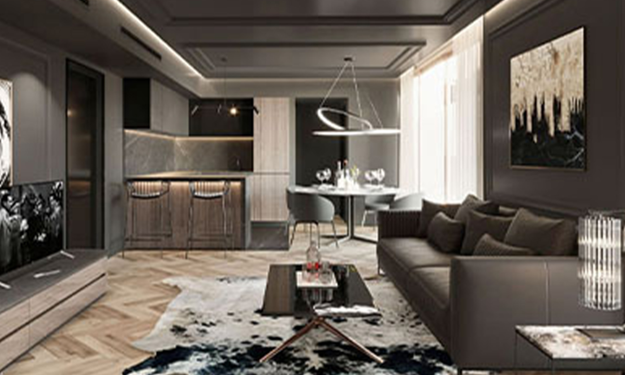 La zona de entrada abierta te lleva directamente al amplio salón y a la cocina totalmente equipada, perfectos para veladas entre amigos o noches relajadas en familia. Las grandes ventanas crean una atmósfera luminosa y acogedora en todo el apartamento y ofrecen impresionantes vistas de los alrededores.