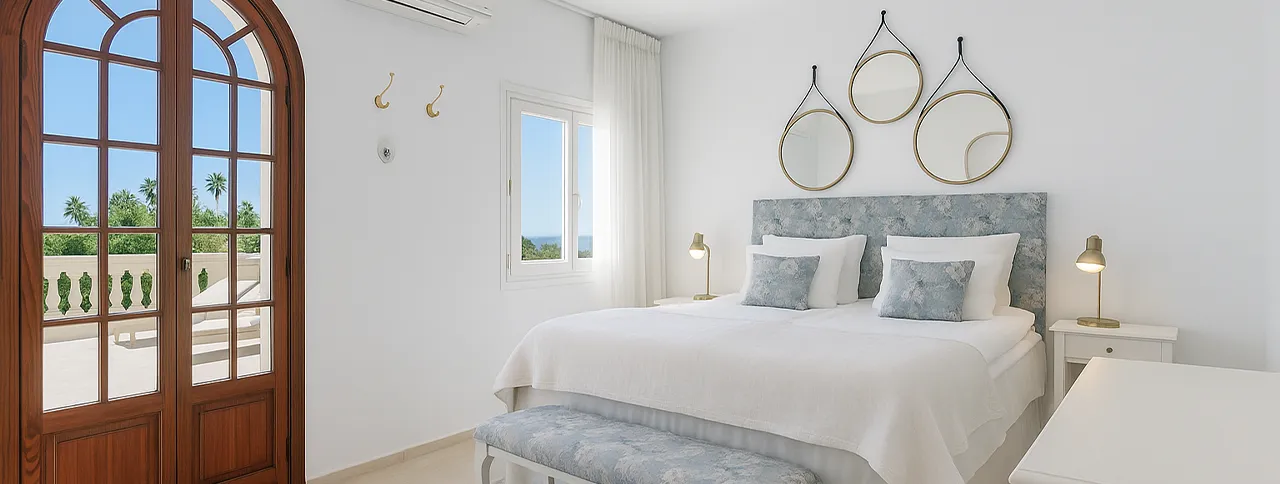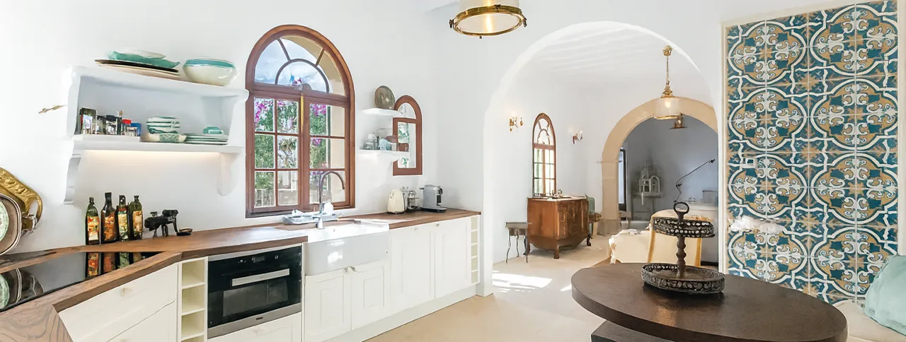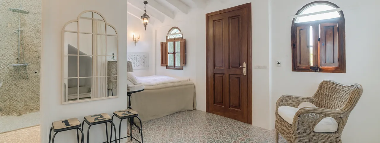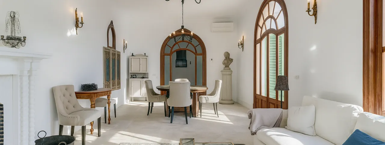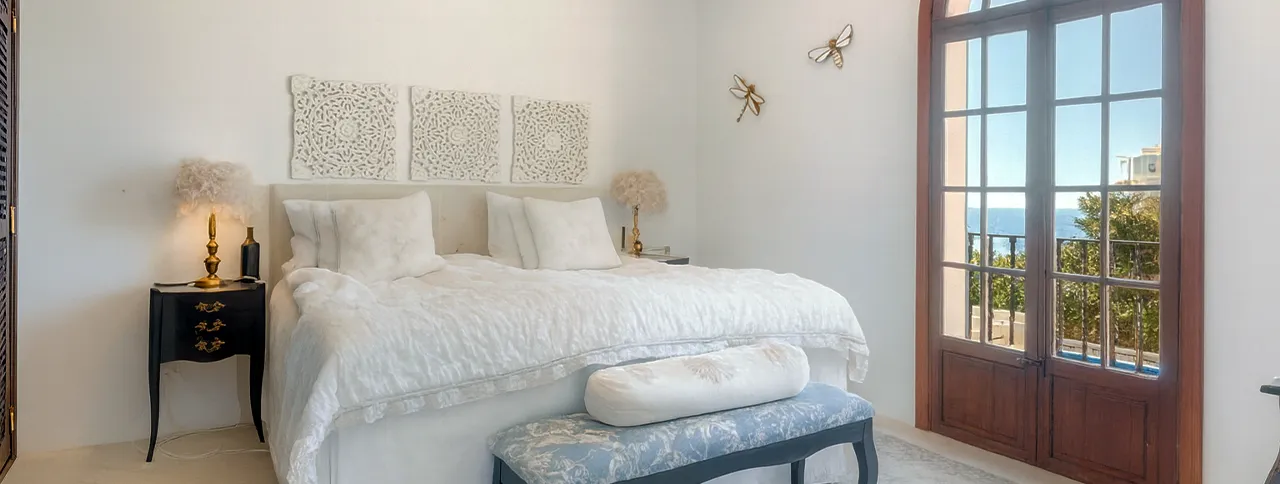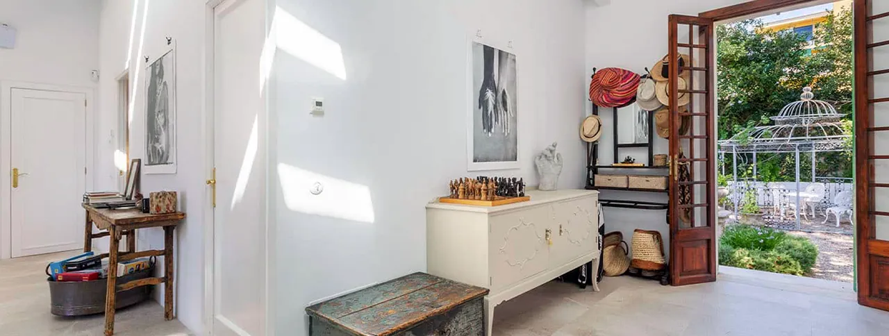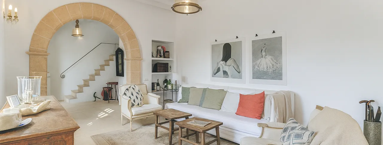 Inside, the villa reveals bright, inviting rooms designed to capture natural light from morning to evening. The living spaces flow seamlessly onto the terraces, creating the characteristic Mediterranean indoor-outdoor connection. Elegant flooring, natural textures and carefully curated design elements emphasize the authentic Mallorquin character, while the complete renovation ensures a fresh, refined atmosphere.