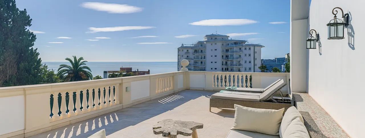 The upper level of the villa features an additional sea-view terrace, offering a peaceful setting for quiet breakfasts or evening sunsets above Cala Major. This elevated space enhances the villa’s sense of tranquility and coastal charm.